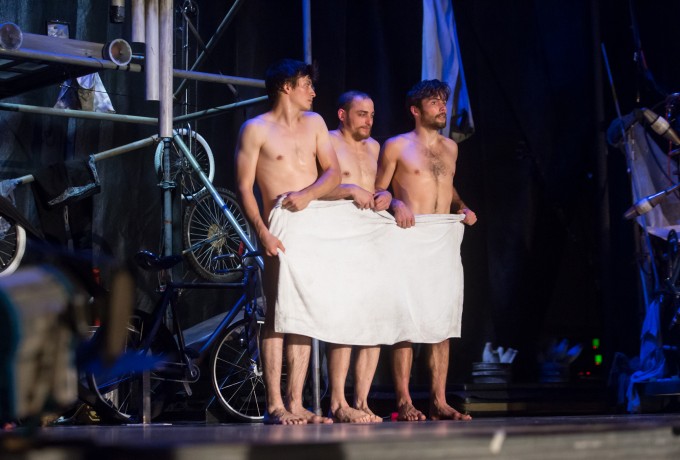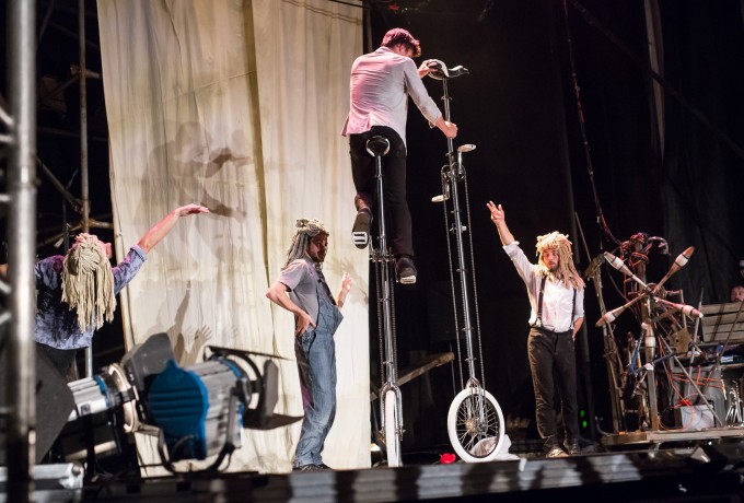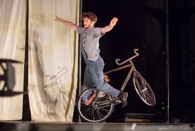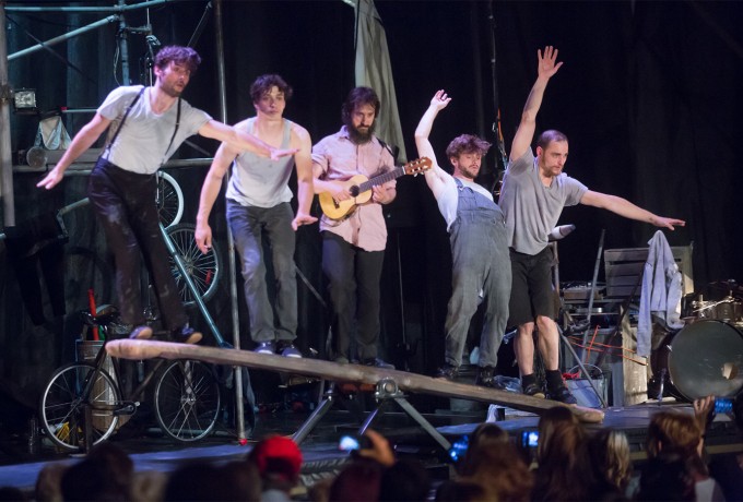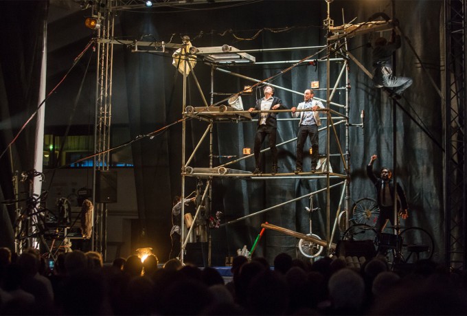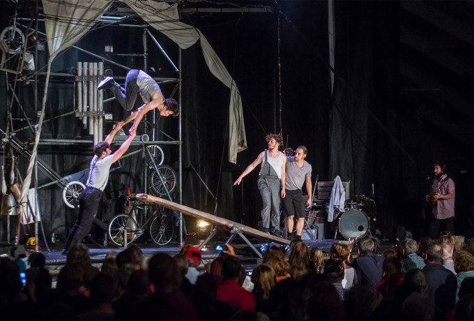 Die Welt steht Kopf – zumindest bei der gestrigen Eröffnungsveranstaltung von „Machine de Cirque“. Die quirlige fünfköpfige Truppe machte sich nach dem Weltuntergang auf die Suche nach weiteren Überlebenden in der Dolomitenhalle. Mithilfe ihres Erfindungsgeistes und einer verblüffenden Maschine aus allerlei Ersatzteilen zeigten die Zirkuskünstler ihre akrobatischen Fähigkeiten und nutzten dafür alle Requisiten, die ihnen in die Finger gekommen sind. Die Show der kanadischen Akrobaten war bis auf den letzten Platz ausverkauft und am Ende gab es sogar Standing Ovations. Wer das gestrige Spektakel nicht erleben konnte, hat heute noch die Chance auf eine Zugabe von „Machine de Cirque“ um 20.45 Uhr in der Dolomitenhalle. Einige wenige Restkarten sind noch beim OLALA Infostand am Hauptplatz erhältlich.