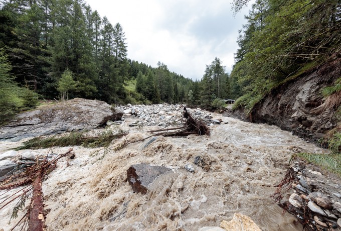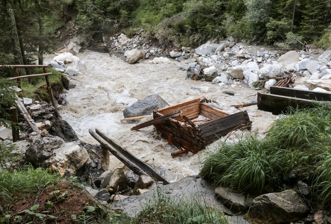 Kalserbach und Dorferbach traten über die Ufer. Historische Roglermühle zerstört.