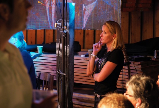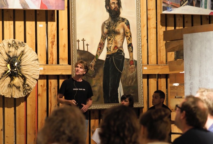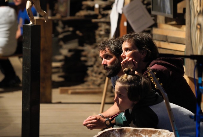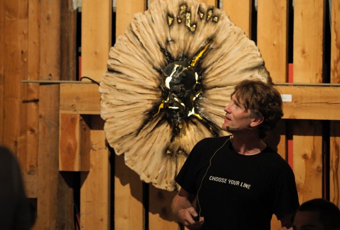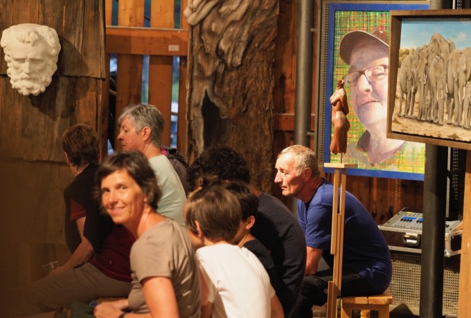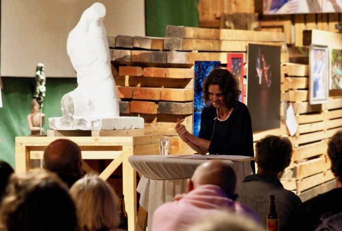 Das alte Sägewerk, das dieser Szene Raum gibt, entpuppt sich dabei als architektonischer Glücksgriff. Es ist ein kraftvoller, authentischer Ort, die ideale Bühne für die Exponate der Iseltaler Künstler und wie geschaffen als Eventlocation für stimmige Veranstaltungen wie jene am Freitagabend. Zwischen Kunstwerken, Großformat-Postern, Feuerschalen und einem bunt gemischten Publikum las Dolomitenstadt-Autorin Silvia Ebner aus ihrem noch nicht veröffentlichten Erstling „Vom Sterben. Und Leben.“ Der berührende Erzählband wird Ende dieses Jahres in den Buchhandel kommen.