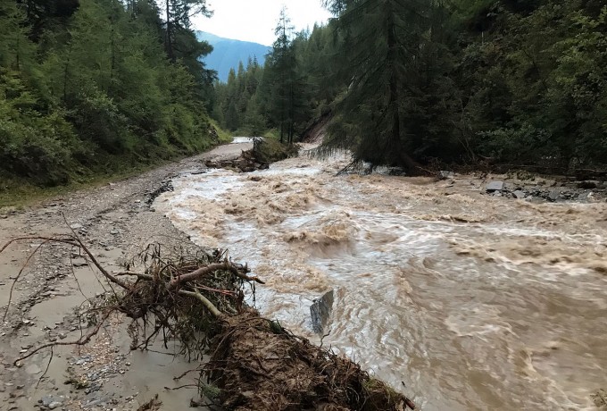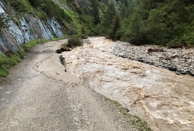Bei den starken Unwettern am Samstag, 5. August, wurden große Teile des Dorfertales bis zur Einmündung in den Ködnitzbach schwer in Mitleidenschaft gezogen. Das meldet heute die Gemeinde Kals am Großglockner in einer Aussendung. In einer Begehung durch Fachleute von Baubezirksamt, Abteilung Wasserwirtschaft, Wildbach- und Lawinenverbauung, Amt für Landwirtschaft und Kalser Gemeindebediensteten wurden die Schäden aufgenommen. Die Schadenssumme übersteige nach ersten Schätzungen vermutlich eine Million Euro, teilt die Gemeindeführung mit.