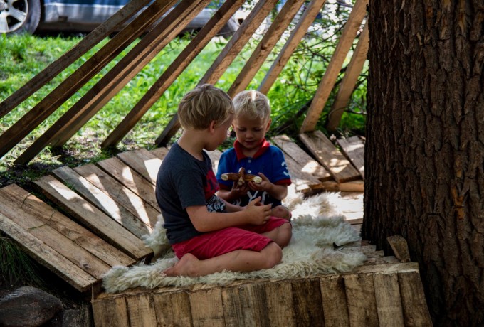 Schon vor den Pforten der Tamerburg konnte man die Ergebnisse des ersten Workshops sehen. Zwischen den Bäumen ragten Bauwerke aus Holz hervor. Das Team der METROPOLIS Architekturwerkstatt von Monika Abendstein und Peter Jungmann hatte sichtlich Großes geleistet.