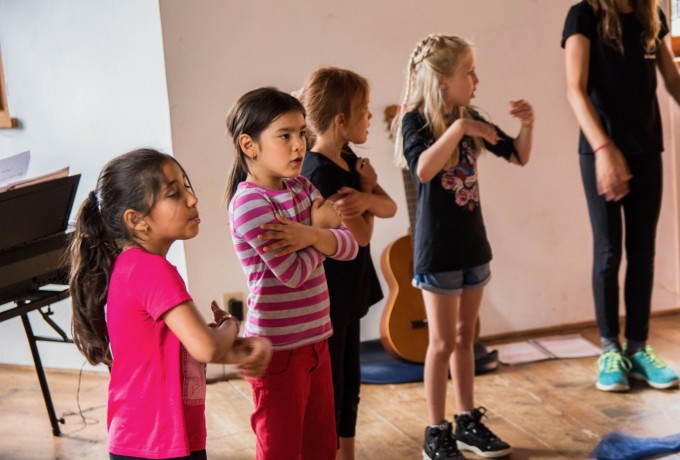 Unter dem Motto „Sing und Swing dich ein!“ begaben sich die am Workshop von Irene Moser teilnehmenden Kinder mit dem Publikum auf eine Reise von Europa über Amerika bis nach Asien und Afrika. Lieder, die zu den jeweiligen Destinationen passten, wurden mit Tanz, verschiedensten Instrumenten und viel Gesang zum Besten gegeben – einige sogar in der jeweiligen Landessprache.