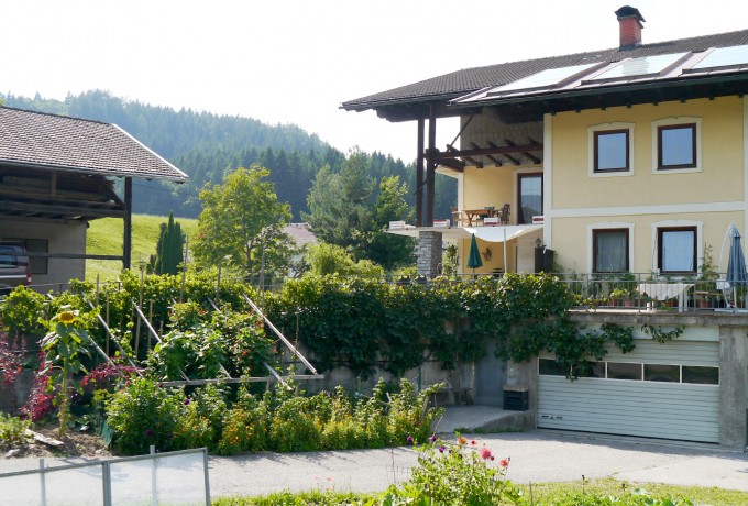 Und wie läuft so ein Tag auf dem Gemeinschaftshof ab? „Das hängt vor allem von der Jahreszeit ab. Jetzt im Sommer haben wir es gerade am schönsten.“ Auf jeden Fall beginnen die Tage aber sehr früh am Morgen. „Kurz nach 5.00 Uhr wecken uns die Hennen. Seit neuestem kommt ihnen aber David zuvor“, erzählt Claudia. Dann wird gearbeitet. Im Sommer auf den Feldern und im Garten – Heuarbeit, Maschinenwartung und den Stall für den Winter vorbereiten, wenn das Vieh von der Alm zurückkommt, stehen an der Tagesordnung. Im Winter geht es dann vor allem um die Tiere, die übrigens auch in der kalten Jahreszeit Freilauf haben. „Ein Urlaub sollte aber irgendwann schon auch mal drinnen sein“, lacht Helmut.