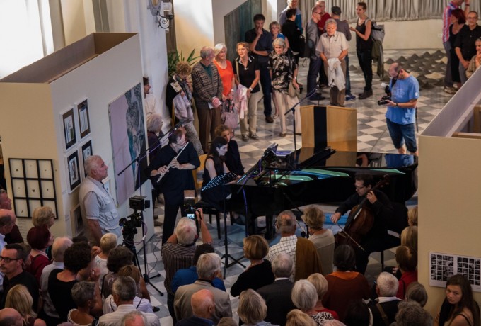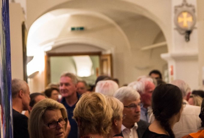 In der Spitalskirche stand das Publikum bei der Vernissage Schulter an Schulter und hatte über das gezeigte Patchwork an künstlerischen Aus- und Eindrücken so viel zu reden, dass die Musiker zweimal ansetzen mussten, um sich Gehör zu verschaffen. Was sich lohnte. Robert Wolf (Flöte), Romed Wieser (Cello) und Agnes Wolf (Klavier) liefen vor allem bei einer Klangexplosion von Bernhard Gander zur Hochform auf und erhielten für die herrlich schräge Performance viel Applaus.