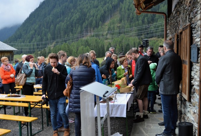 TVBO-Obmann Franz Theurl schielt während seiner Rede auf die Armbanduhr, da er wohl beim zeitgleich stattfindenden Dolomitenmann gefragt ist. Ein Funktionärsschicksal. Er spricht von „hochmotivierten Kühen“ und sieht die Sennerei als ein Geschenk für den Osttiroler Tourismus. Der Obmann des Talmarkts, Ziegenbauer Philipp Jans, überlegte sich seine Rede laut eigenen Angaben in der Früh beim "Melchen". Er zeigt sich beeindruckt vom Erfolg der Sennerei und stellt die zentrale Frage: "Sind immer größere Betriebe die Zukunft, oder nicht doch kleinere, regionale Unternehmen wie dieses?"