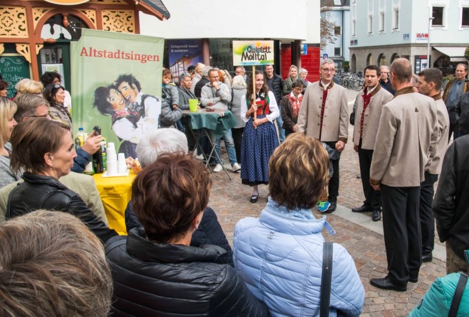 Den „Herbst erleben mit allen Sinnen“ – dazu waren Besucherinnen und Besucher der Lienzer Innenstadt am Samstag, 30. September, eingeladen. Für die Ohren wurde im Zuge der Programmreihe auch heuer das bewährte Altstadtsingen angeboten. Nach einem gemeinsamen Auftakt der Chöre auf dem Johannesplatz zogen die musikalischen Formationen durch die herbstlich geschmückte Innenstadt und gaben dabei an elf verschiedenen Plätzen jeweils das eine oder andere Ständchen zum Besten. Zu hören waren: der Belcanto Chor Abfaltersbach, der Singkreis Arnbach, das Quintett Mölltal, der Männergesangsverein Matrei, die Chorgemeinschaft Rietz, die Singgemeinschaft VoKals, Good Vibrations, das Quintett St. Lorenzen und der Osttiroler Lehrerchor.