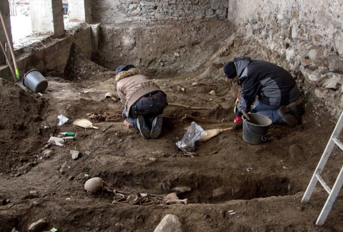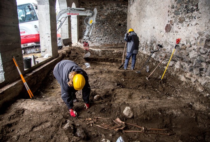 Archäologen entdeckten in den ehemaligen Stallungen ein Gräberfeld aus dem frühen Mittelalter.