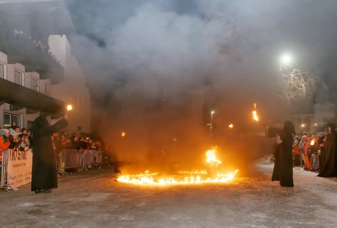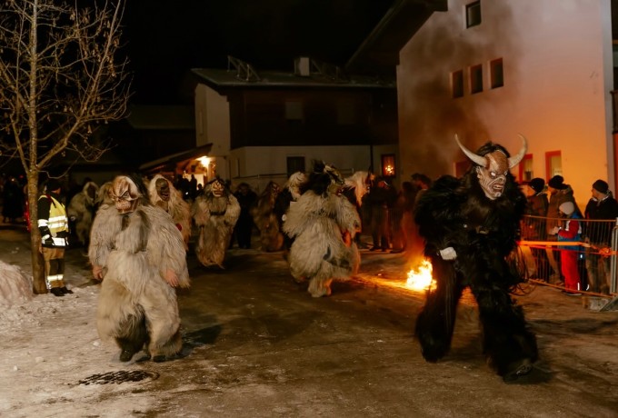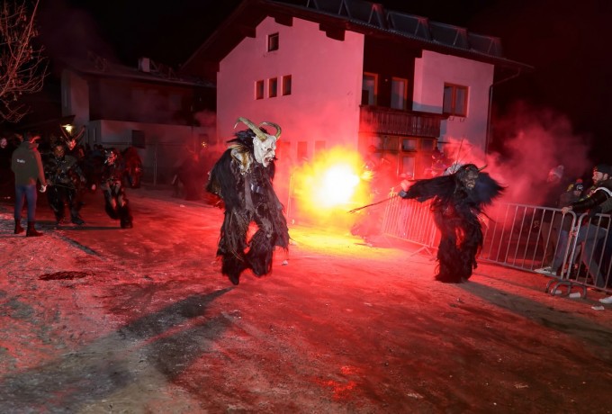 Beim Krampusumzug in Strassen mischen traditionell auch einige Gruppen aus Südtirol kräftig mit. Es gibt aber noch andere Besonderheiten, die den Pustertaler Lauf von den Iseltaler und Lienzer Ritualen unterscheiden. Zum Beispiel pyrotechnische Elemente, von Feuershow bis Feuerwerk. Und Seltenheitswert haben auch die Teufelinnen, die im schaurigen Zug mitmarschieren. Anderswo sind Fell und Maske ausnahmslos dem angeblich starken Geschlecht vorbehalten. Hier eine Slideshow von Toni Außerlechner, bei dem wir uns für die Bilder herzlich bedanken.