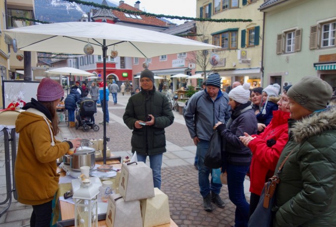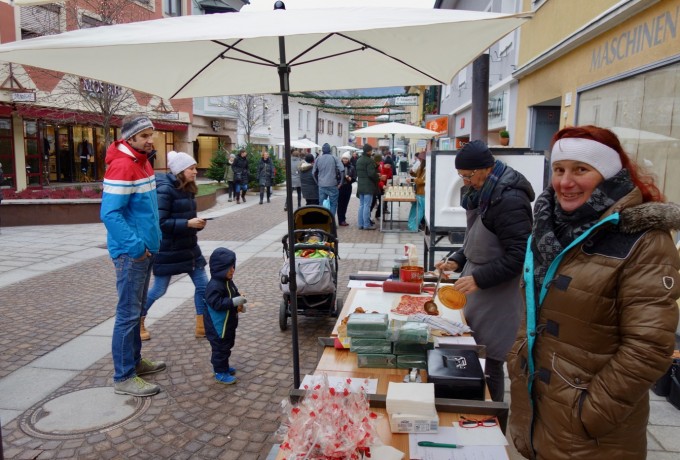 Beim „Advent Spaziergang“ am 8. Dezember – eine Ruck-Zuck-Aktion nennt es Kathrin Jäger – waren sofort alle dabei. In kürzester Zeit wurden Bewilligungen eingeholt, Tische für die Verkaufs- und Punschstände organisiert, Ofenbau Steinringer stellte einen Holzofen zum Brotbacken zur Verfügung, der Verein Hand in Hand machte auch mit und so gelang es, die Messing- und Kreuzgasse und alle Besucher in vorweihnachtliche Stimmung zu bringen.