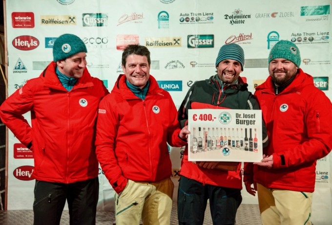 Jeder Teilnehmer unterstützte heuer mit seiner Anmeldung automatisch die Bergrettung Lienz. Obmann Thomas Zimmermann bedankte sich bei den Veranstaltern, gratulierte bei der Siegerehrung den Schnellsten, übergab mit Sportvereins-Obmann Anton Steurer die Preise und erhielt auch gleich die 400 Euro Erlös aus einer besonderen Schnapsflaschen-Versteigerung. Josef Burger erhielt den Zuschlag für diese hochprozentige Kollektion.