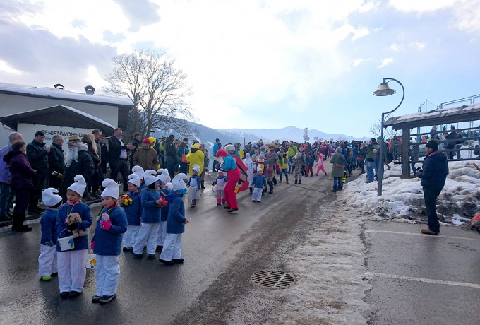 Um 15 Uhr ging es los: 15 Kindergartenkinder, verkleidet als die Schlümpfe, eröffneten – das bekannte Schlümpfelied trällernd – den Umzug. Auch Vampire, ein Geist, zwei Legomännchen, ein Krankenhaus-Team, die sieben Zwerge und ein Skelett waren unterwegs. Die Vereine, etwa die Jungbauernschaft oder die Musikkapelle, widmeten sich aktuellen Themen.