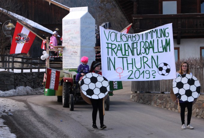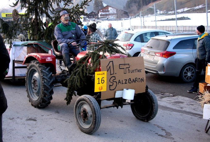 Am Samstag, 10. Februar, veranstaltete die Sportunion Thurn den alle drei Jahre stattfindenden Sonnseitner Faschingsumzug. Vom Wahlerhof im Oberdorf bis zum Gemeindezentrum zeigten an die zwanzig gemeldeten Gruppen, was die Gemüter der Leute bewegte, was zum Schmunzeln anregte, oder einfach nur allerlei Lustiges. Ob im Dorfleben, oder in der großen weiten Welt – an Themen und Ideen fehlte es nicht.