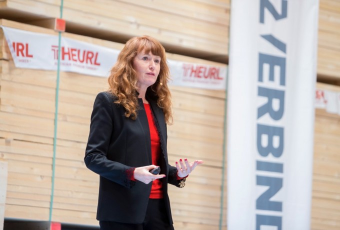 Im letzten Referat äußerte sich die Trendforscherin Oona Horx-Strathern über das Zukunftshaus. Wie werden wir in Zukunft wohnen? Es gibt darauf offenbar keine eindeutige Antwort, aber doch einige Aspekte, die das Future Living ausmachen werden. Grundbedürfnisse werden sich nicht ändern, aber die soziale Interaktion. Darauf muss die Architektur reagieren. Das Bad wird zum individuellen Wohnzimmer, die Küche zum Gemeinschafts- und Kommunikationsraum usw. Dadurch verändern sich räumliche Größenordnungen unmittelbar im Grundriss. Im Trend zu Ritualen und zu neuer Achtsamkeit spielt für die Zukunftsforscherin auch der Baustoff Holz zunehmend eine Hauptrolle.