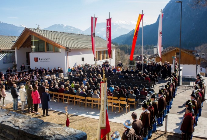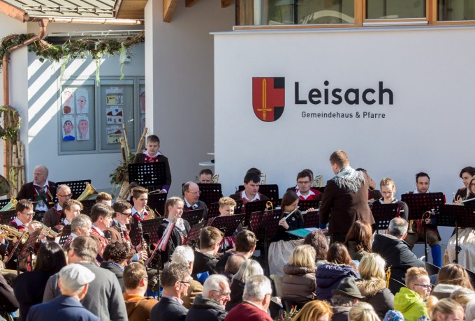 Was Amlach plant, hat Leisach schon gebaut: ein nagelneues Gemeindehaus, das am Palmsonntag eingeweiht und heute, am 27. März, von seinen Nutzern bezogen wurde. Laut Bürgermeister Bernhard Zanon kostete das Bauprojekt in Summe 3,7 Millionen Euro, gefördert vom Land Tirol und geplant vom Architekturbüro Schneider-Lengauer nach Ausschreibung eines Ideenwettbewerbs. Das Gemeinde- und Pfarrhaus mit seinen Außenanlagen setzt eine Reihe von infrastrukturellen und dorfräumlichen Akzenten. Der gesamte Bereich des neuen Dorfzentrums wurde inklusive aller angrenzenden Gemeindestraßen und des Kirchplatzes neu asphaltiert oder gepflastert. Zusätzliche Parkplätze wurden angelegt, Wasserleitung und Kanal, Fernwärme und Glasfaser installiert.