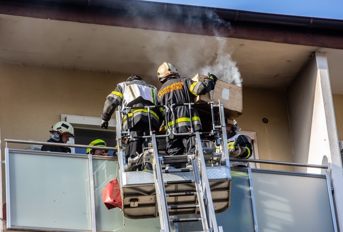 Gegen 18:10 Uhr heulten in Lienz die Sirenen. Die Feuerwehr wurde zu einem Balkonbrand in einem Mehrparteienhaus in der Görzerstraße gerufen. Die Einsatzkräfte brachten den Brand rasch unter Kontrolle. Eine Person aus dem betroffenen Haus wurde bei dem Versuch, den Brand zu löschen, leicht verletzt und erlitt eine Rauchgasvergiftung. Neben der Feuerwehr Lienz waren auch das Rote Kreuz und die Polizei im Einsatz. Es entstand erheblicher Sachschaden. Fotos: Brunner Images