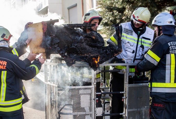 Eine Person bei Löschversuch leicht verletzt. Feuerwehr hatte den Brand rasch unter Kontrolle.