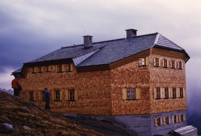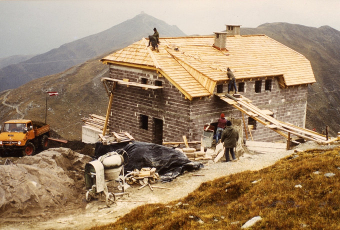 „Mein Opa war bereits am ersten Bau der Hütte beteiligt, damals hieß sie noch Viktor-Hinterberger-Hütte und stand weiter unten als die jetzige Hütte“, erzählt Andreas. „1983 wurde dann die ‚neue’ Sillianer Hütte am heutigen Standort errichtet, dabei übernahm mein Vater als Zimmermeister eine tragende Rolle. 1989 wurde die Viktor-Hinterberger-Hütte abgetragen.“ Zu diesem Zeitpunkt hatte Andreas die Firma seines Vaters bereits übernommen und war fortan selbst eng mit der Sillianer Hütte verbunden. Die folgende Slideshow (Bilder: AV Sillian, Hannes Viertler, Holzbau Lusser) gibt einen guten Überblick über die Metamorphose der beliebten Bergunterkunft: