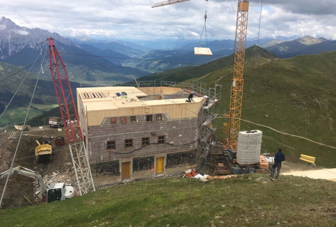 Im Gebirge hoch über Sillian, gut behütet von bewachsenen Hügeln, wird seit Monaten emsig auf einer der spektakulärsten Baustellen des Bezirks gearbeitet. Die Sillianer Hütte wird erneuert und erweitert. Auf über 2.400 Metern Seehöhe tummeln sich zahlreiche Baustellengeräte, Kräne ragen in den Himmel. Aufgrund der exponierten Lage musste eine Materialseilbahn oberhalb der Leckfeldalm errichtet werden. Eine imposante Baustelle gegenüber dem Zackengewirr der Sextener Dolomiten mit Blick auf Haunold, Dreischusterspitze, Drei Zinnen, Cristallo und viele mehr.