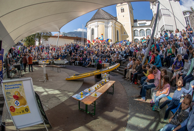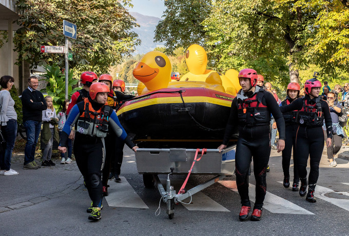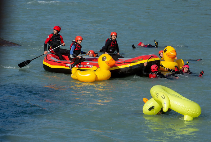 Am vergangenen Samstag, 29. September, ging in Lienz das erste große „Entenrennen“ der Wasserrettung über die Bühne. Ganze 3000 gelbe Schwimmenten legten dabei ein Stück auf der Isel zurück – die Vögel wurden dabei nicht wie geplant selbst zu Wasser gelassen und mit Ölsperren herausgeholt, sondern machten quasi gesammelt eine kleine Bootsfahrt von der Pfarrbrücke zur Spitalsbrücke. So stellte die Wasserrettung sicher, dass auch nicht eine einzige Ente in der Isel zurückblieb.