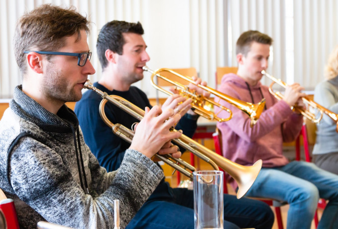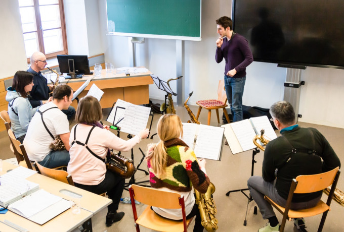 Wer beim Konzert des Ensembles am Sonntag, 10. Februar, in der Landwirtschaftlichen Lehranstalt Lienz dabei war wird bestätigen: die Übung ist gelungen! In den Klassenzimmern der LLA war in den Tagen vor dem Konzert Musik das einzige Unterrichtsfach, präsentiert von drei Männern, die Jazzwecan als musikalische Entwicklungshelfer engagiert hatte. Der Komponist und Trompeter Horst Michael Schaffer, der Saxophonist Marc Hainzer und der in Holland lebende Bassist Daniel Lottersberger nahmen sich jeweils eine Sektion der Band zur Brust und vermittelten genau jene Essenz des Jazz, die am Ende swingt, groovt und immer wieder aufs Neue musikalisch überrascht. Wir waren mit der Kamera an einem der Übungstage dabei:
