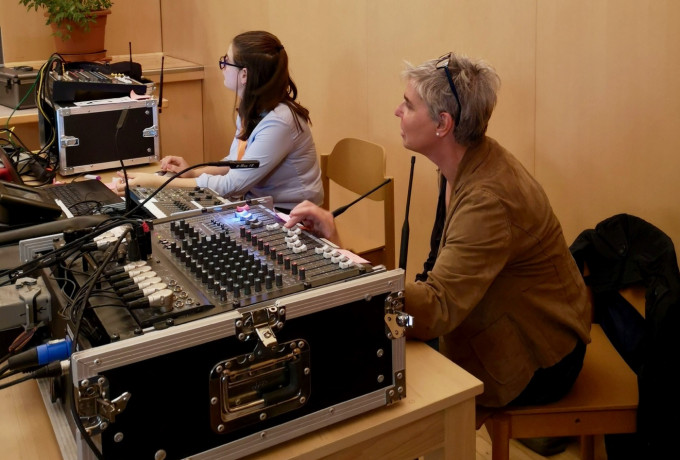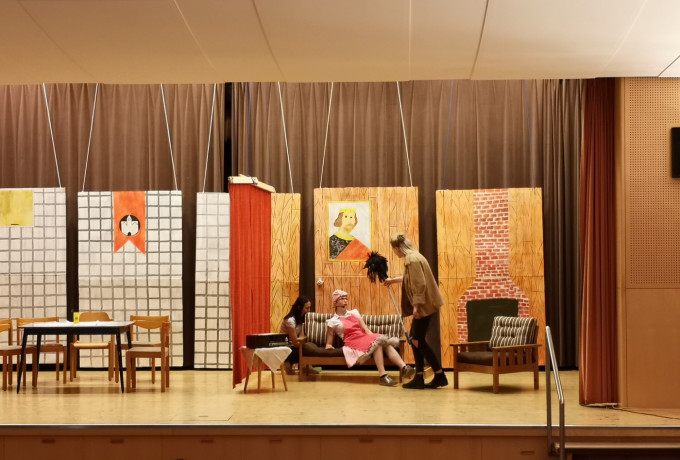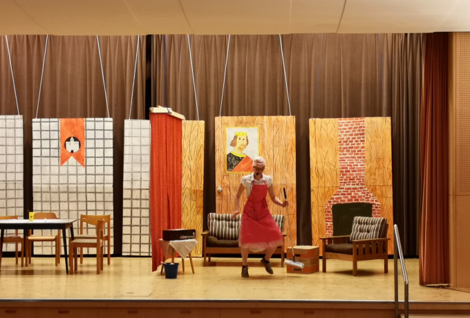 Sechs Mädchen besetzten die Rollen der Familie Hathaway, die in ihr neu renoviertes Schloss Meilenstein einzieht und zunächst nicht bemerkt, dass dort noch jemand haust: Der Geist Sir Franklin III, gespielt von Noah Auer, der schließlich sogar noch Besuch von seiner Geisterenkelin Lucy (Chiara Schnell) bekommt. Nur zwei Monate Vorbereitungszeit blieb der jungen Schauspieltruppe bis zur Uraufführung des „Geisterstücks“. Auf der Bühne gab es gar nur eine einzige Probe. Doch alles klappte wie am Schnürchen und die Schülerinnen und Schüler der Volksschulen Nord, Michael Gamper und Süd, Schülerinnen und Schüler der Allgemeinen Sonderschule und der Fachschule spendeten tosenden Applaus für Schauspielkünste und Bühnenbild.