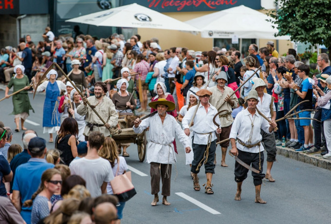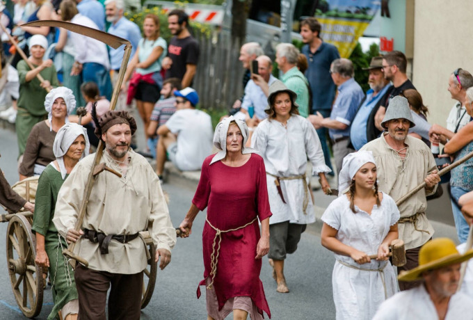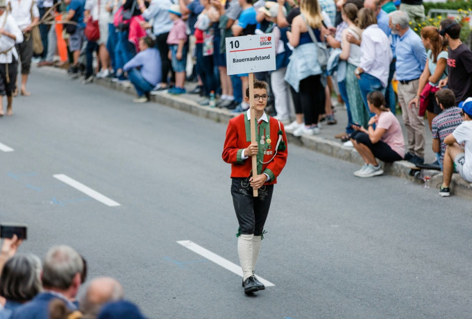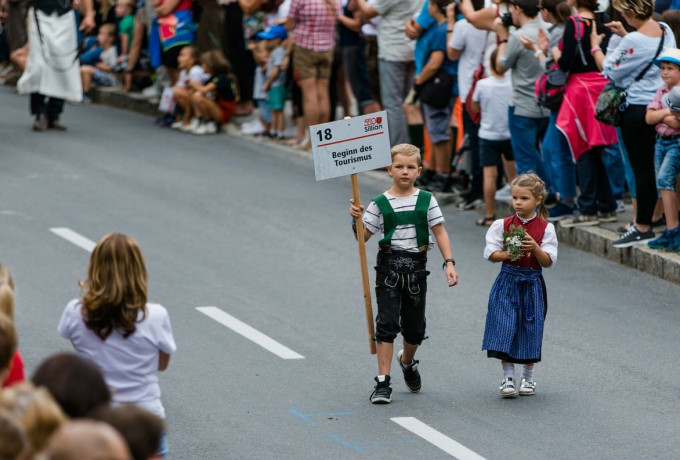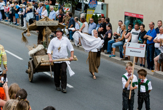An den Zuschauern am Straßenrand marschierten akribisch gestaltete Themengruppen vorbei, tausend Jahre Geschichte in bewegten Bildern, historisch korrekt in Kostümen, Accessoires und Werkzeugen zusammengestellt, Soldaten, Marktfahrer, Feuerwehr, Bauern, Sportler, Schüler, Geistliche und natürlich das Görzer Grafenpaar, das den Sillianern am 29. Juni 1469 per Urkunde das unwiderrufliche Recht einräumte, einen Wochenmarkt abzuhalten. Zwischen den rund 30 Festwagen – darunter auch Gastgruppen aus Südtirol – marschierten Musikkapellen und politische Prominenz auf, fotografisch festgehalten von Toni Außerlechner, dem wir für die beiden Slideshows herzlich danken.