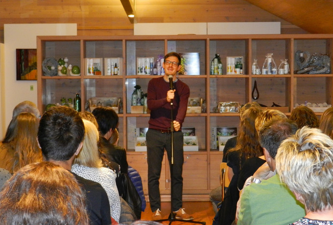 Inspirierende Texte, nicht enden wollende Applauswellen und ein begeistertes Publikum – so lässt sich der Poetry-Slam-Abend am vergangenen Samstag, den 28. September in kurzen Worten beschreiben. Unter dem Motto „Wortzauber“ lud das Vitalpinum zum 10. Geburtstag kleine und große Wortkünstler ein und wahrlich zauberhaft wurden die Worte der Slammer von den zarten Düften nach Weihrauch und Kräutern in die Ohren und Herzen des Publikums getragen.