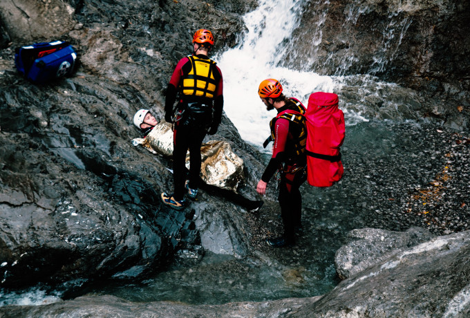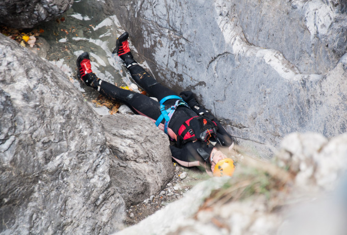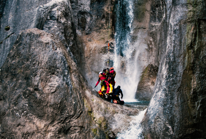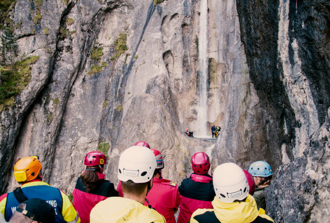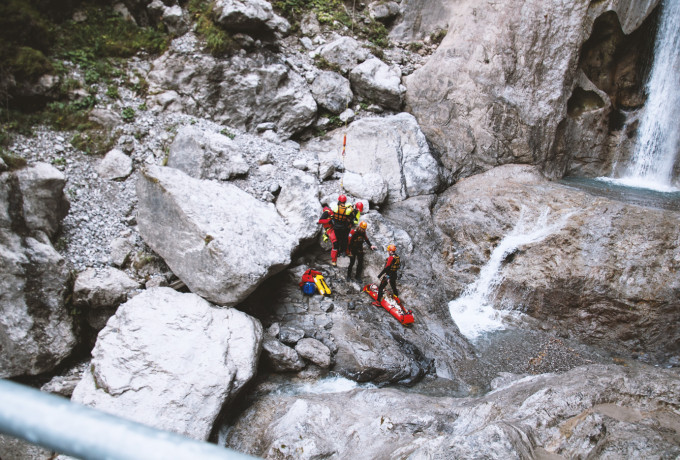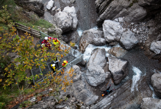 Eine besonders aufwendige Übung wurde am Samstagnachmittag in Lavant durchgeführt. Beim Frauenbach-Wasserfall wurde ein Canyoningunfall simuliert. Übungsleiter Michael Stock erklärt den Einsatz: