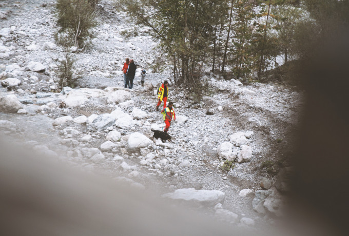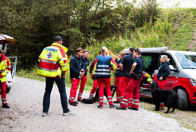 Bei dieser Übung hatten die Retter Unterstützung aus der Luft. Weil die Wasserrettung zwei Mal pro Jahr auf Kosten des Landes Tirol einen Hubschrauber für ihre Übungen zur Verfügung gestellt bekommt, flog ein Helikopter aus Karres bei Imst zur Übung am Frauenbach ein. Auch die Rettungshundestaffel war in Lavant dabei.