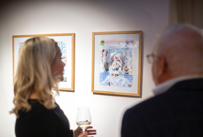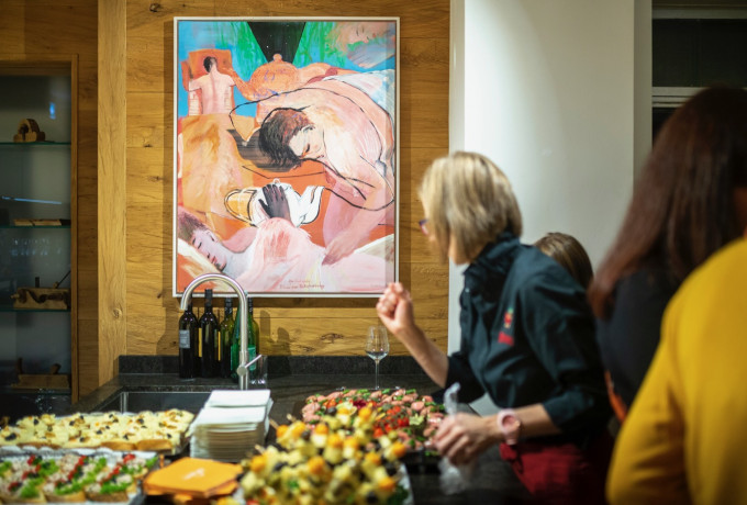 Alle anderen Werke bietet der Künstler zu Preisen zwischen 600 und 7000 Euro an. Ein hübsches Motiv mit dem Titel „Glücklich Schlafende“ gibt es als Radierung in limitierter Auflage von 15 Stück zum Preis von 250 Euro. Von dieser Druckgrafik wechselten einige Exemplare schon am geselligen Abend der Vernissage den Besitzer. Das kunstinteressierte Publikum stand jedenfalls noch lange bei Rotwein und Ortner-Schmankerln zwischen Möbeln, Betten und Kunst von Michael Hedwig.