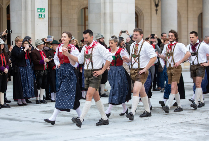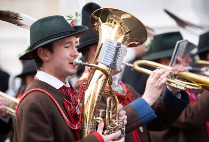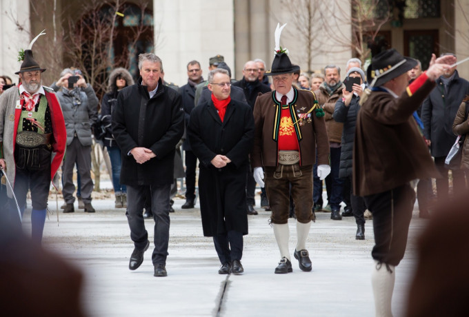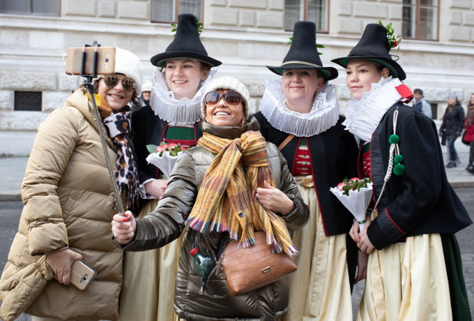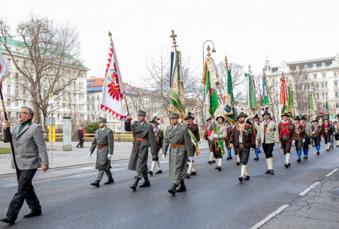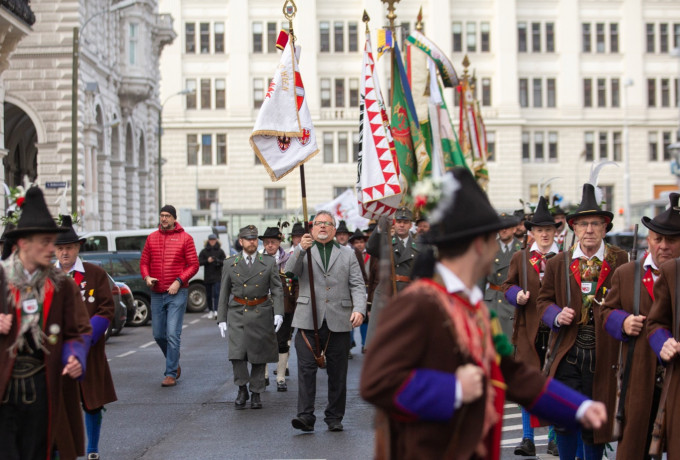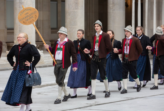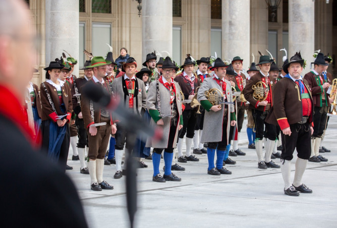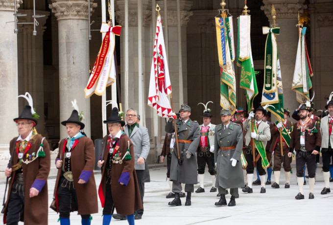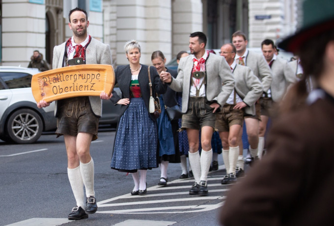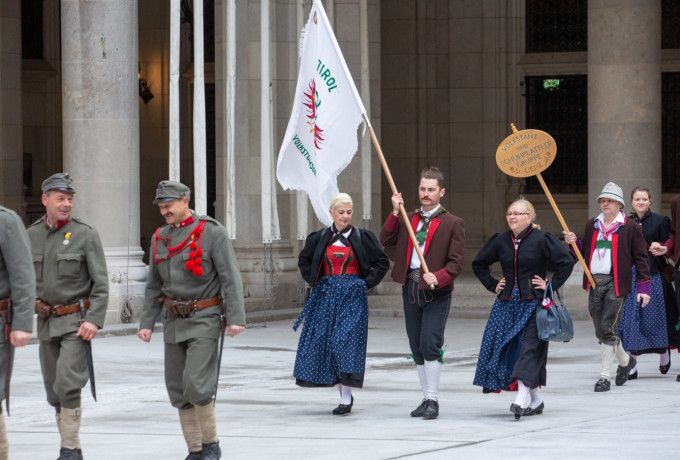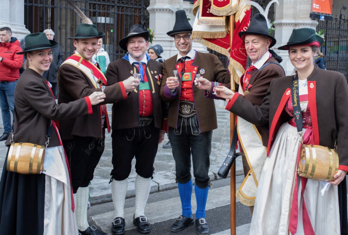 Der Tirolerball geht zwar erst am Abend über die Bühne, doch die Abordnung aus dem Lienzer Talboden absolvierte bereits am Samstagnachmittag einen bunten und lautstarken Auftritt vor dem Wiener Rathaus. Hausherr Michael Ludwig ließ sich durch Landtagspräsident Ernst Woller vertreten und der staunte nicht schlecht über die Stärke und Vielfalt der angerückten Trachtenformationen, angeführt vom Dölsacher Bürgermeister Josef Mair, der als Obmann des Planungsverbandes Grüße aus Osttirol überbrachte.