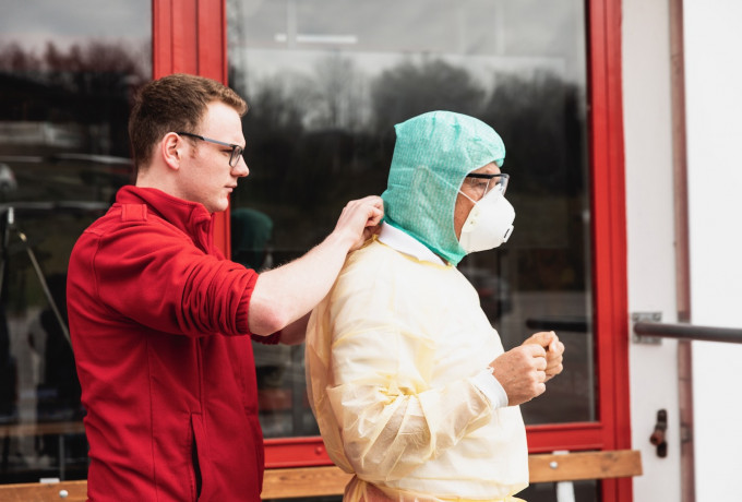 Teststation? Das ist für viele neu, obwohl es diese Einrichtung im Bezirk schon seit einer knappen Woche gibt. Sie funktioniert wie ein Drive-in! Krösslhuber erklärt uns Sinn und Funktion. „Bei Patienten, die mobil sind, ist es einfacher, wenn sie zu uns kommen als wenn ein Rettungsteam mit Vollschutz in der Wohnsiedlung vorfährt. Wir haben deshalb auf einem Parkplatz in Lienz eine mobile Teststation eingerichtet.”