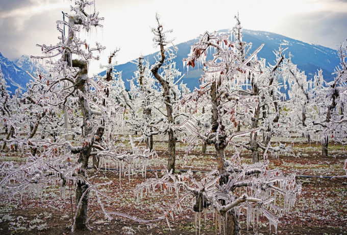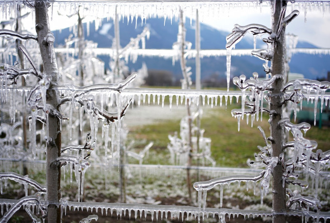 Manchmal drängen sich Vergleiche einfach auf. Die im Eis eingekapselten Knospen der Apfelbäumchen im Obstgarten der LLA haben in diesen kalten Märztagen fast schon Symbolcharakter. Paradoxerweise schützt sie ausgerechnet die Quarantäne im Eispanzer vor der Kälte und dem Absterben! Wir haben über diese Maßnahme der Obstbauern berichtet. Das Eis wird schmelzen, die Tage werden wärmer, die Blüte beginnt und das Leben geht weiter.
