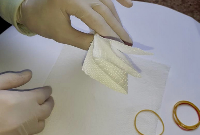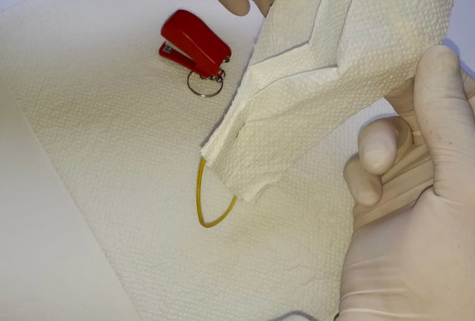 Rojda und Samet, ein kurdisches Pärchen, haben die Lösung. “Wir wollten Masken haben, die einfach herstellbar und austauschbar sind. Schauten uns zu Hause um und entwickelten die Ein-Minuten-Maske. Die Materialien sind denkbar simpel: Je nach Belieben und Vorrat feste Küchenrolle, Flies oder ein Textilstreifen, Tacker (mit Klammern) und zwei Elastikbändchen. Ich lasse mir die einzelnen Schritte der Maskenerstellung von den beiden erklären, bastle nach und staune: Das klappt auf Anhieb und ist tatsächlich schneller hergestellt, als ein Rollkragenpulli angezogen!