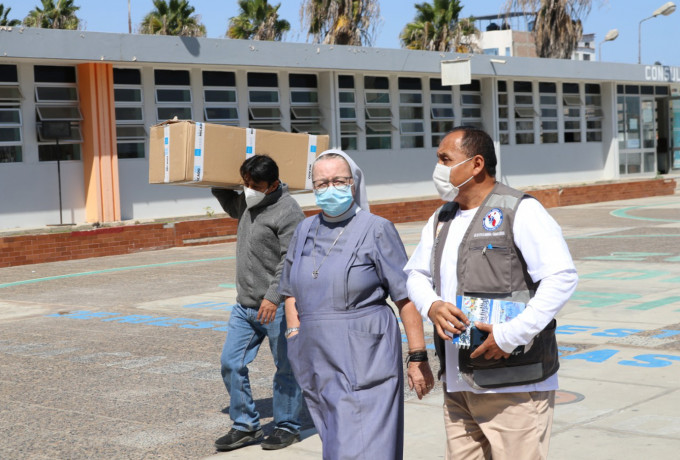 Die Barmherzigen Schwestern mit dem Mutterhaus in Zams organisierten bereits im April eine Hilfsaktion, bei der unter anderem Osttiroler Schutzmasken an Krankenhäuser in der peruanischen Provinz Chimbote geliefert wurden. Am 18. Mai kam schließlich eine Lieferung von 950 Masken in Peru an, die von einer Delegation um die Oberin der Barmherzigen Schwestern, Rebecca Frick, an das Krankenhaus La Caleta in Chimbote übergeben wurde.