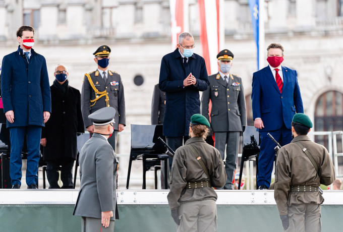 Der heurige Nationalfeiertag stand ganz im Zeichen der Pandemie. Der Heldenplatz, wo sich normalerweise Hunderttausende Menschen versammeln und Hunderte Rekruten öffentlich angelobt werden, wurde großräumig abgeriegelt. Im Inneren der Absperrung fand ein Mini-Festakt mit zwölf Rekruten, zwei Regierungsmitgliedern, dem Bundespräsidenten und Vertretern der Geistlichkeit statt. Die Bevölkerung konnte zumindest via TV dabei sein. Auch die Ansprachen wurden von Corona dominiert.