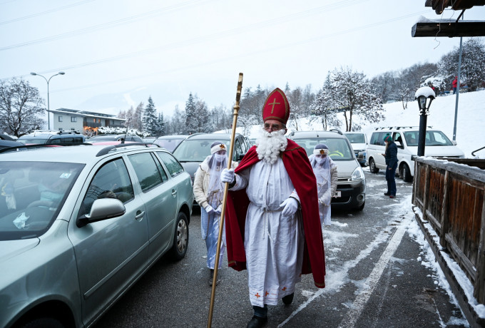 In Gaimberg grüßte der Nikolo durch die Autoscheibe