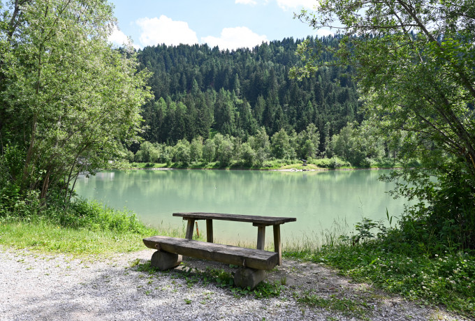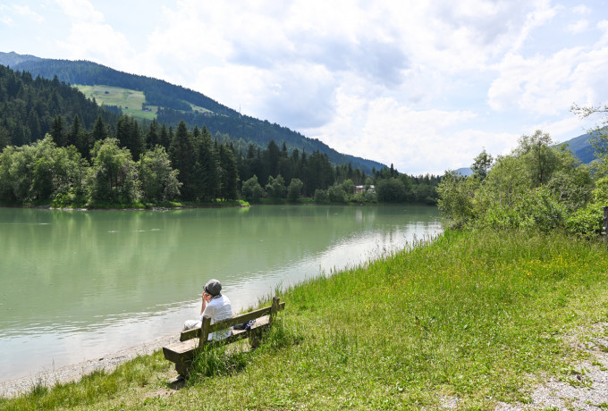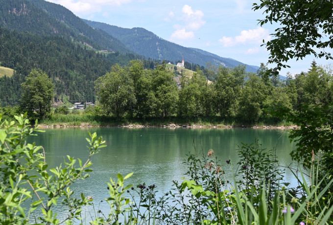 Am Bahnhof in Lienz steigen wir mit Walter in den Zug nach Tassenbach. Nach einer knappen halben Stunde erreichen wir unser Ziel. Der Bahnhof befindet sich auf Höhe des Speicherteiches, wir müssen also nur ein paar Schritte bis zum Ufer gehen. Walter nimmt uns mit auf den barrierefreien Rundwanderweg, erzählt von den vielen Vogelarten und Amphibien, die hier zuhause sind und schwelgt in Erinnerungen an vergangene Tage. Das klappt am besten auf einer der vielen Bänke, die um den See verteilt sind.