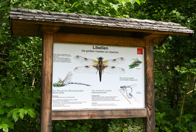 Für Zugvögel ist der Stausee der einzige größere Stützpunkt in dieser Region. Rund 30 Vogelarten leben in diesem Naherholungsgebiet. Der zwei Kilometer lange Spazierweg rund um das idyllische Gewässer hat auch uns überzeugt. Obwohl die Gegend beliebt ist, ist der See noch immer ein kleiner Geheimtipp und ein lohnenswertes Ziel. Wer nach der kleinen Wanderung Hunger hat, kann sich vor der Rückfahrt noch beim Forellenhof neben dem Bahnhof kulinarisch verwöhnen lassen.