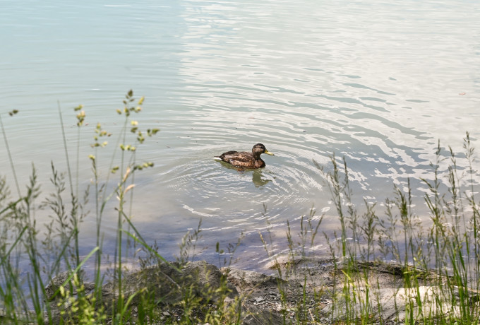 Für die Umrundung im gemütlichen Spaziermodus brauchen wir eine knappe Stunde. Immer wieder watscheln Enten über den Schotterweg zurück ins Wasser oder in den Schilfgürtel. Auch die Pflanzenwelt hat an diesem Gewässer einiges zu bieten, hier wächst zum Beispiel die seltene Kriech- und Lorbeerweide. Bevor der künstliche See entstand, wurden typische Pflanzen ausgegraben und nach dem Bau wieder rund um den Speicher eingesetzt.