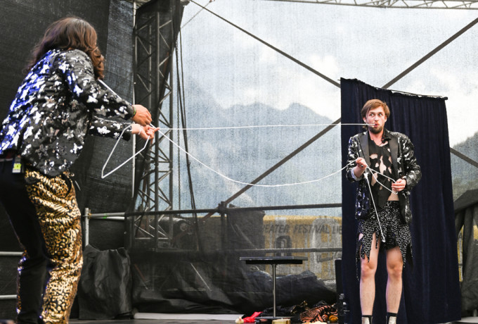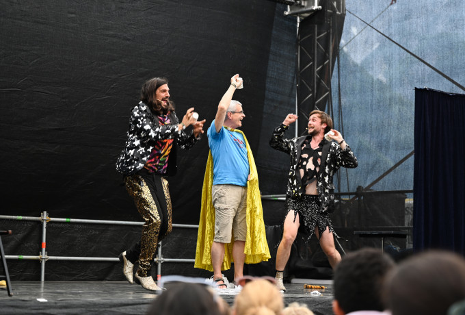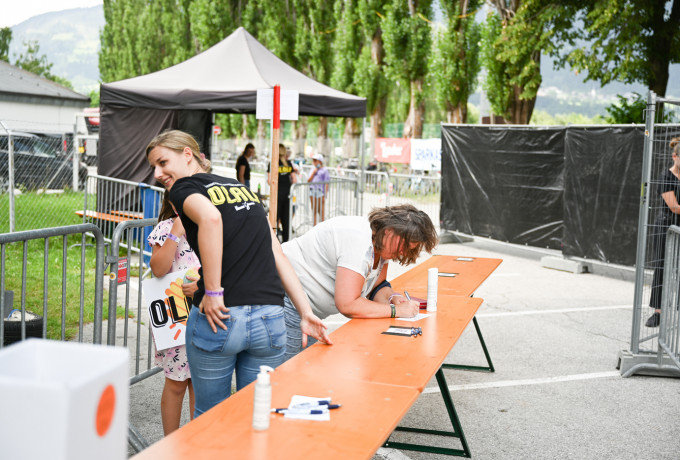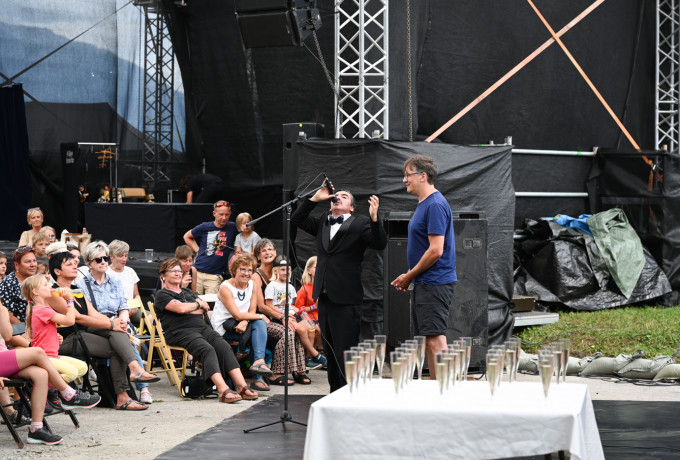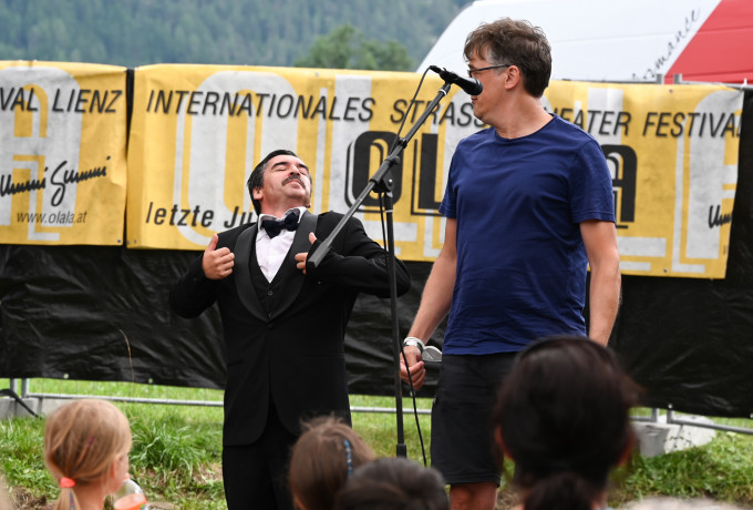 Die altbekannten 3Gs, die von der Olala-Crew am Eingang des Festivalgeländes am Ebnerfeld mittels QR-Code-Scanner vorbildlich kontrolliert wurden, lassen sich im Ambiente des heute gestarteten Straßentheaterfestivals beliebig erweitern: „Geschmunzelt, gelacht, gestaunt“, meinte Moderator Christian Hölbling, der inzwischen schon zum Olala-Grundinventar gehört.