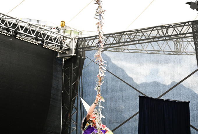 Die sieben Acts, die heute auf der Olala-Bühne standen, erweiterten die Sammlung der „Gs“ um: getanzt, geturnt, gezaubert, gesungen, gerissen. Gerissen? Ja, wortwörtlich! Mr. Lo, ein gebürtiger Kalifornier, stand als „Paperman“ auf der Bühne und verzauberte das Publikum - selbst vollständig in Zeitungspapier gekleidet - mit der Kunst des Papierreißens.