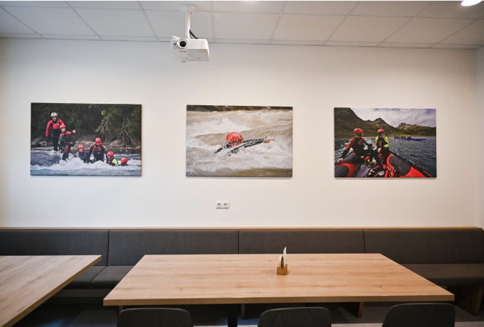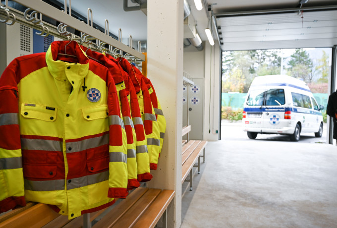 Die alte Einsatzstelle wurde neu gebaut, die Rettungsorganisation kann sich nun auf 250 Quadratmetern ausbreiten und hat genug Platz für das gesamte Equipment. Die Raumaufteilung nahmen sie selbst in die Hand, um die neue Zentrale auf ihre Bedürfnisse zuzuschneiden. Ein wesentlicher Vorteil ist auch die Lage, wie Pflanzl erklärt: „In der Peggetz haben wir im Schnitt 15 Minuten von der Alarmierung bis zur Ausfahrt gebraucht. Hier beim Schwimmbad sind es fünf bis sieben Minuten.“