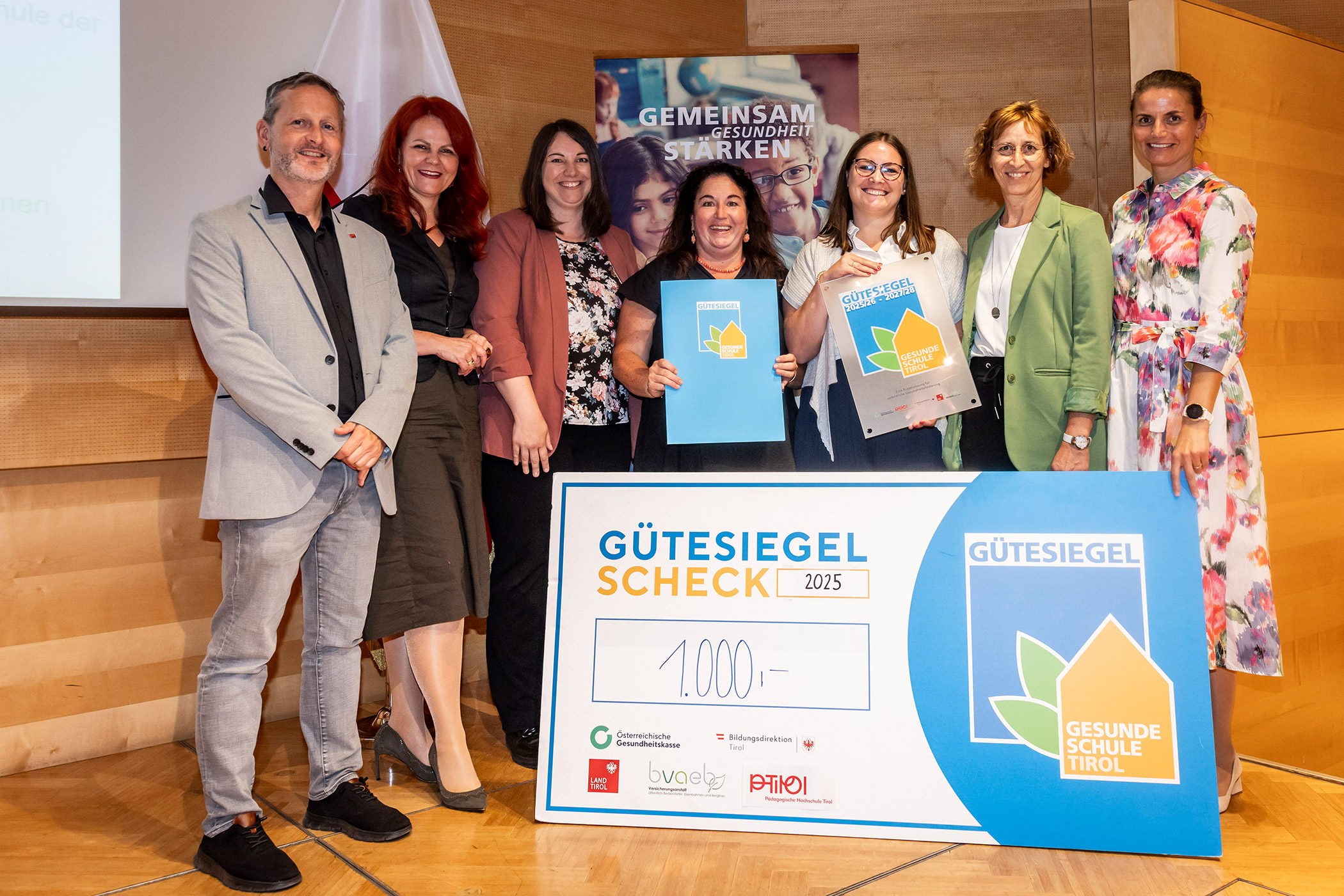 Das Gütesiegel „Gesunde Schule Tirol“ wird seit 2016 jeweils für drei Jahre verliehen und ist eine gemeinsame Initiative von Land Tirol, der Bildungsdirektion für Tirol, der Österreichischen Gesundheitskasse (ÖGK), der Versicherungsanstalt öffentlich Bediensteter, Eisenbahnen und Bergbau (BVAEB) sowie der Pädagogischen Hochschule Tirol (PH Tirol).
