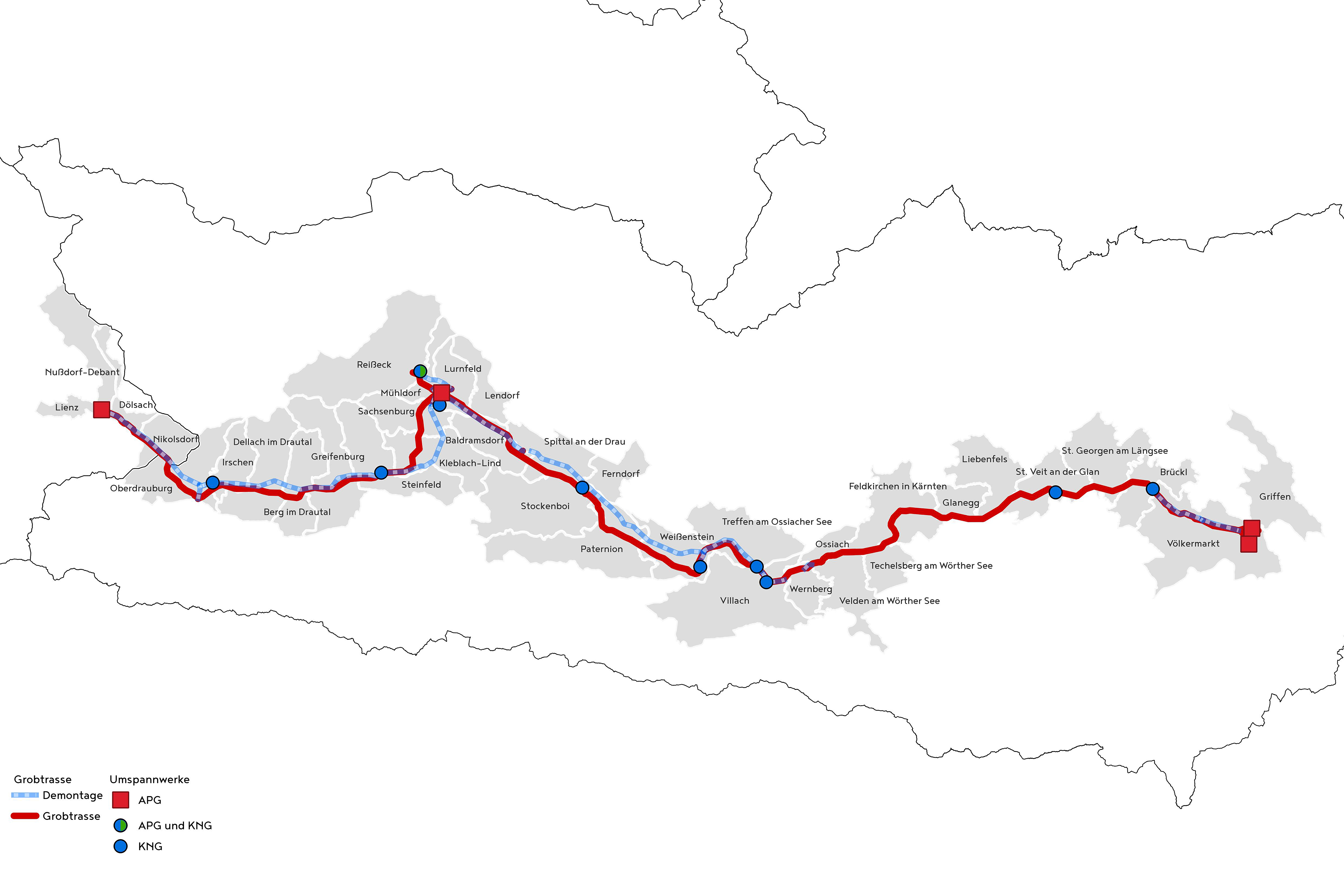 Das Großprojekt der APG nützt die Kärnten Netz, um in der Trasse der 380-kV-Leitung auf den gleichen Masten eine 110-kV-Leitung mitzuverlegen. „In der Trasse der 380-kV-Leitung wollen wir eine leistungsfähige 110-kV-Verbindung zwischen Oberdrauburg und Obersielach errichten und sie mit dem bestehenden 110-kV-Netz verbinden“, sagt Eva Tatschl-Unterberger, Geschäftsführerin der Kärnten Netz. Nach der Inbetriebnahme der neuen 110-kV-Infrastruktur werden rund 140 km bestehende 110-kV-Leitungen und einige bestehende Umspannwerke demontiert bzw. abgebaut.