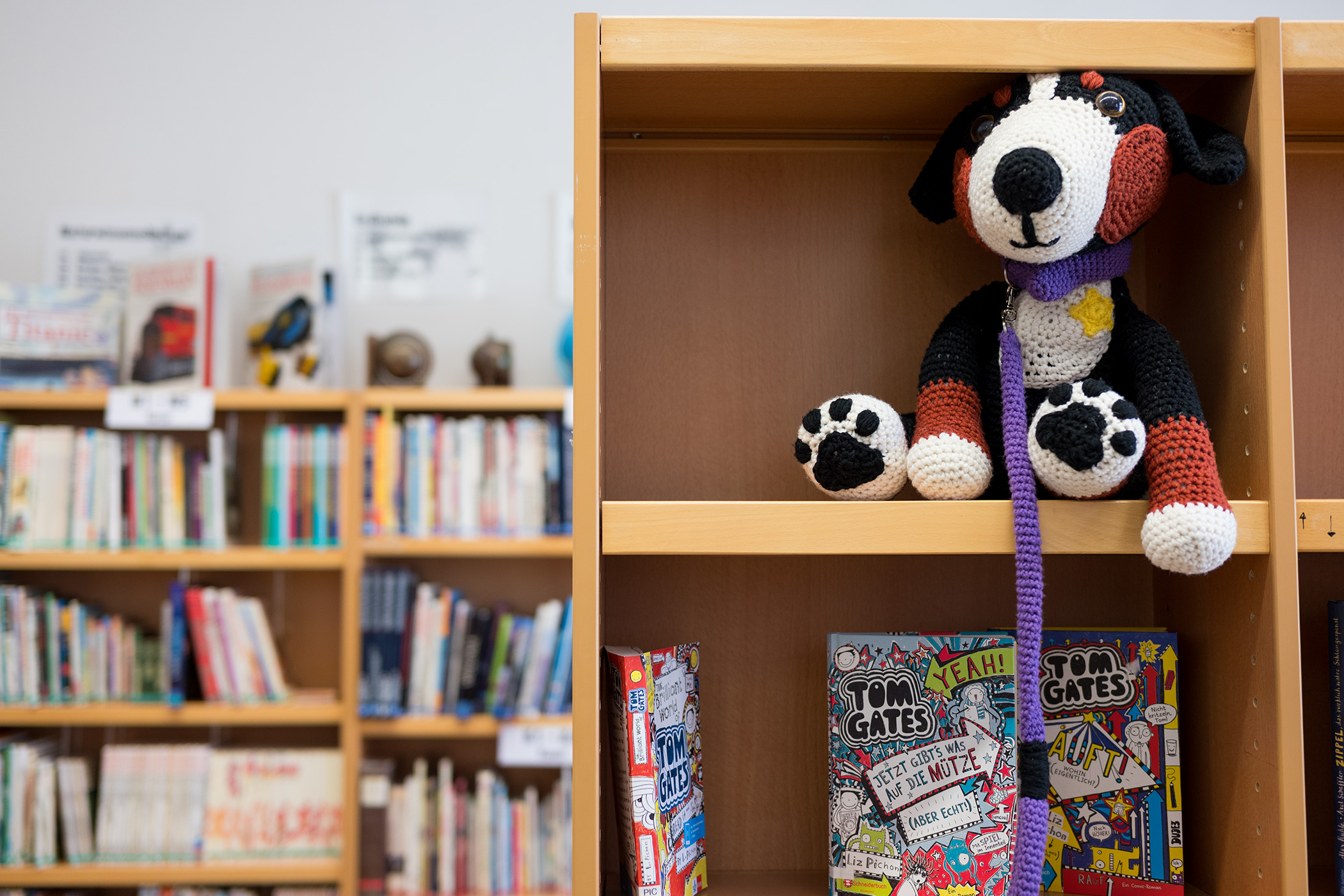 So stellt die Schulbibliothek in der MS Egger-Lienz auch einen Ort der Zusammenkunft dar. Hier wird gespielt und dem hektischen Schulalltag entflohen. Eine Projektgruppe sammelt aktuell Ideen für einladende Dekorationen. Besonders beliebt ist Schulhund Fino, der montags während der ersten drei Schulstunden in der Bibliothek ist – viele Kinder kommen vorbei, um Zeit mit ihm zu verbringen.