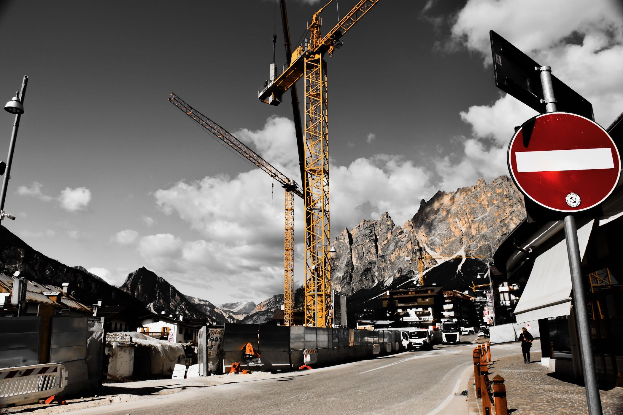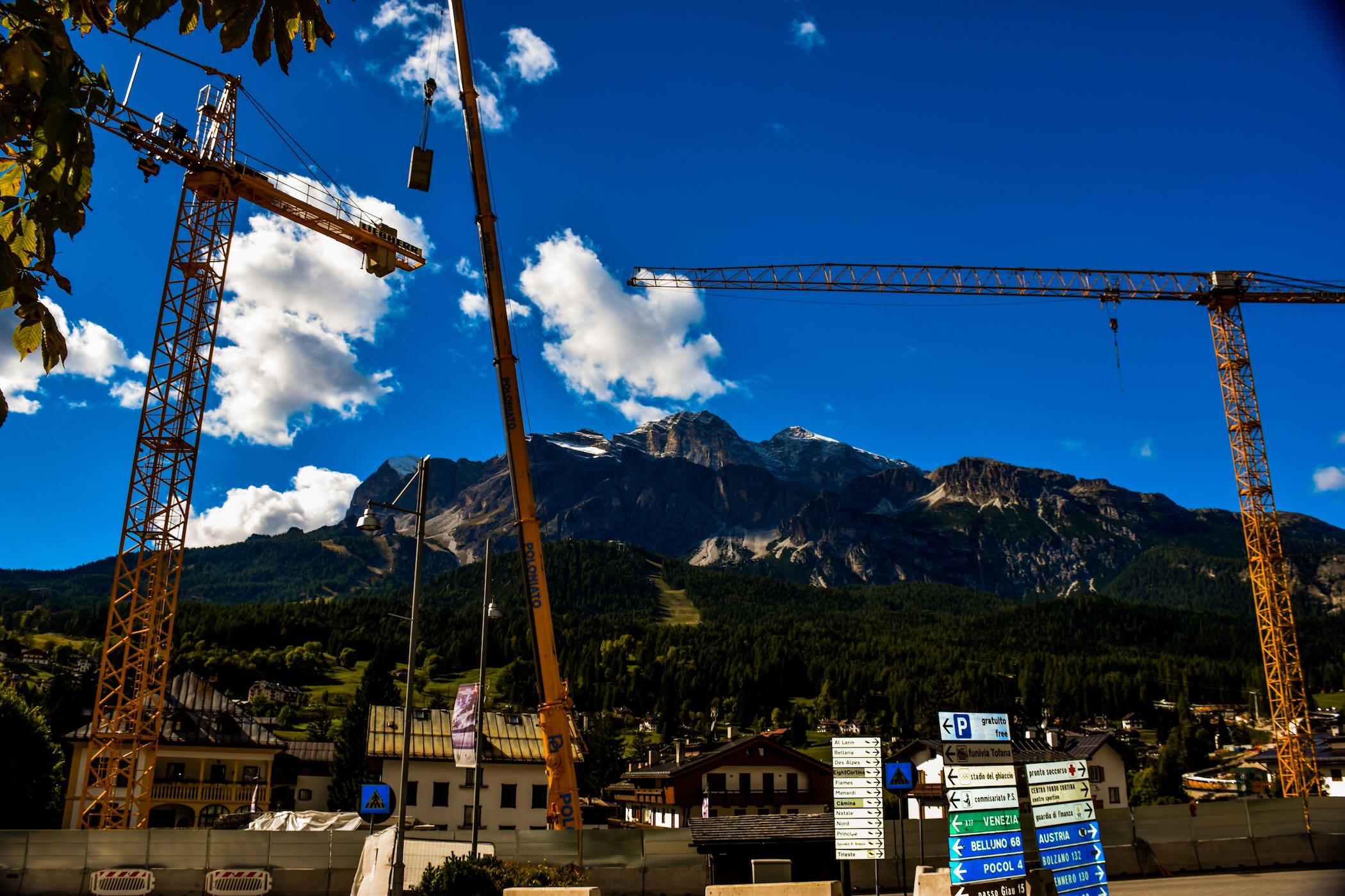 Die Fotos zeigen eindrucksvoll, wie stark sich das Stadtbild derzeit verändert: Kräne über den Dächern, neue Straßenzüge, provisorische Bauzäune, mitten in der majestätischen Kulisse der Dolomiten. Sie verdeutlichen, mit welchen Herausforderungen, aber auch mit welchem Ehrgeiz die Region den Countdown zu den Spielen erlebt.