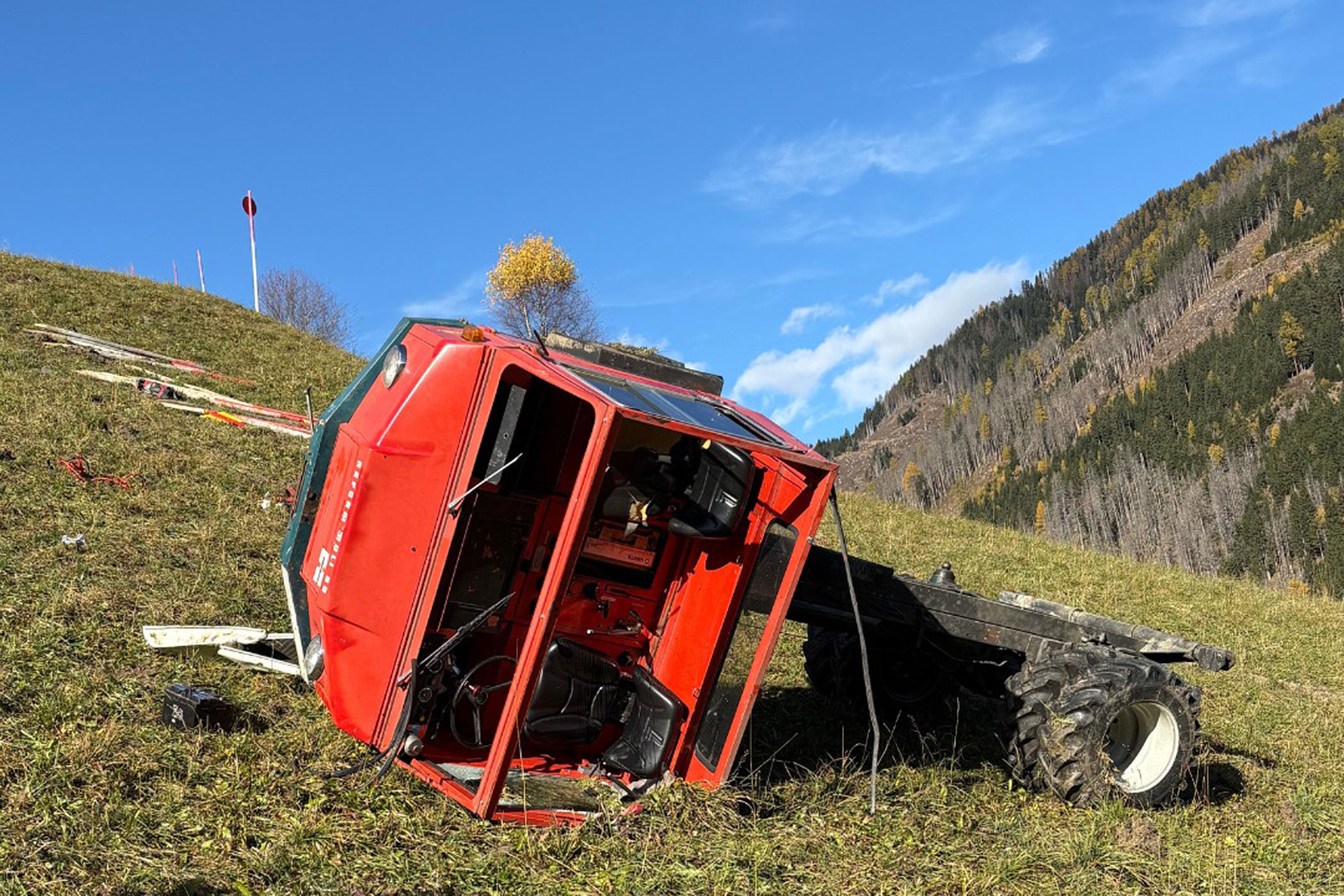Am 28. Oktober gegen 12:15 Uhr transportierte ein 60-jähriger Mann in Sillianberg mit einem Motorkarren Markierungsmaterial. Bei der Fahrt hangabwärts lenkte er über eine Geländekante und geriet ins Rutschen. Der Motorkarren überschlug sich, der Mann wurde vom Fahrzeug geschleudert und zog sich schwere Verletzungen zu. Arbeitskollegen setzten einen Notruf ab. Der 60-Jährige wurde mit dem Rettungshubschrauber in die Klinik Innsbruck geflogen. Die Bergung des schwer beschädigten Fahrzeugs übernahm die Feuerwehr Sillian.