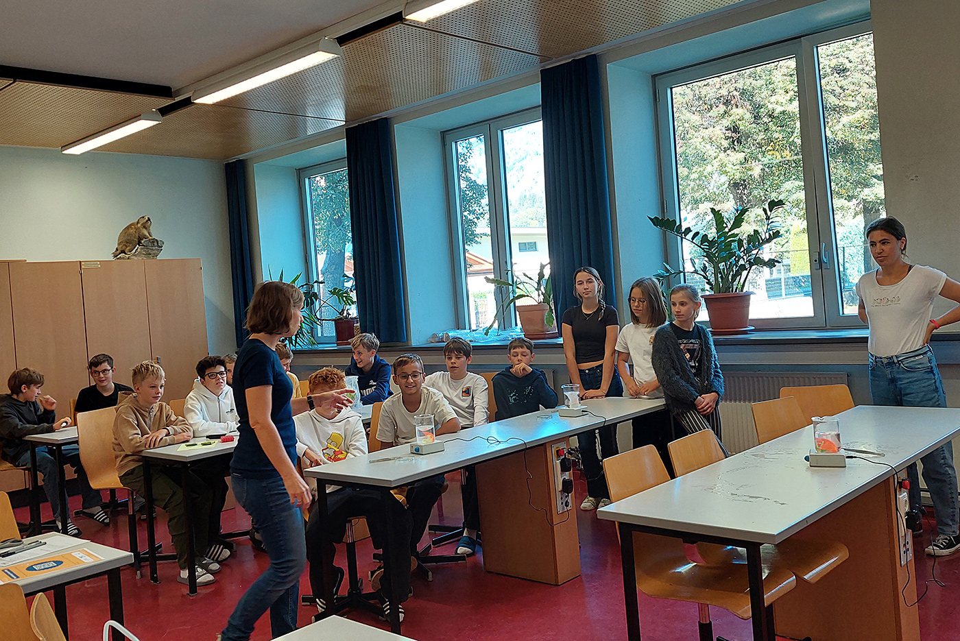 Die Schüler:innen führten dabei auch selbst Experimente durch, die ihnen u. a. ganz klar zeigten, dass Kunstfasern wie Polyester beim Waschen Mikroplastik freisetzen, Naturfasern wie Baumwolle hingegen nicht.