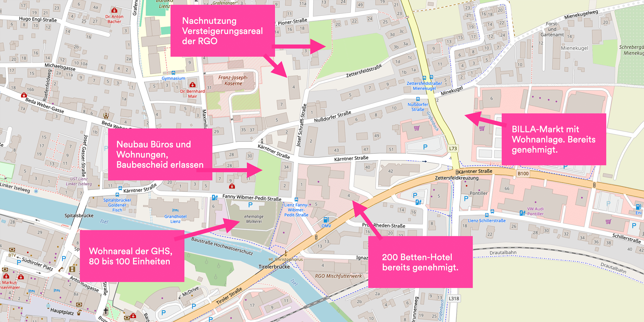 Trummer beeinsprucht deshalb ein geplantes Bauprojekt auf dem ehemaligen „Lochmann-Grundstück“, das eine Steuerberatungskanzlei erwarb, um hier ein Büro- und ein bis zwei Wohngebäude zu errichten. Der Gemeinderat von Lienz erteilte die Baugenehmigung in seiner Oktober-Sitzung, Einsprüche sind aber noch möglich.